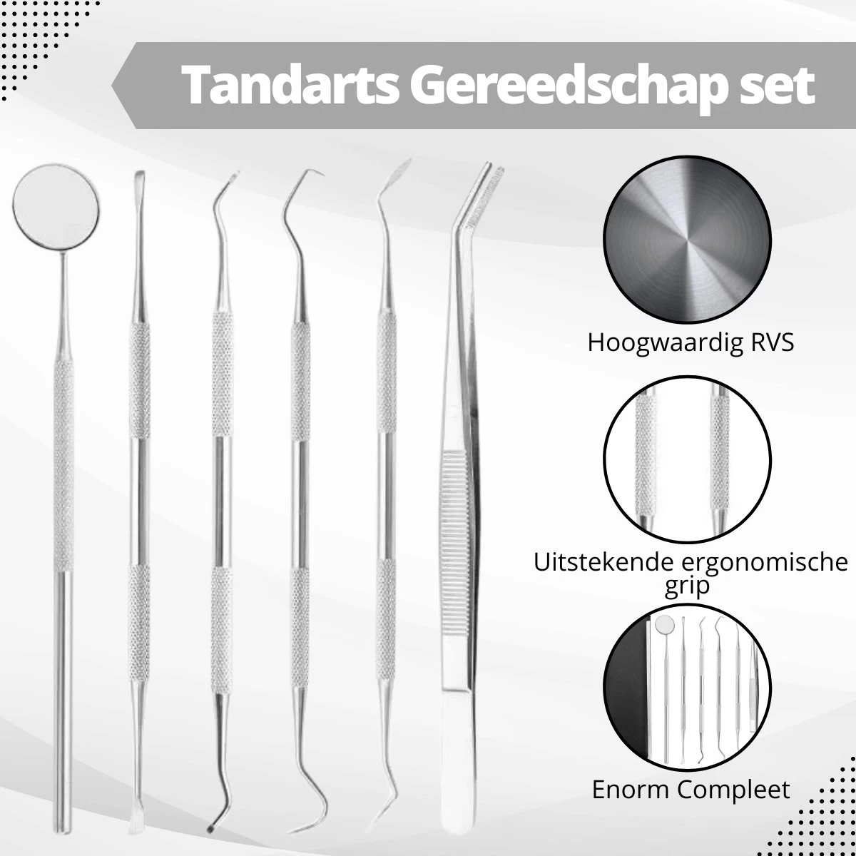 Met maar liefst 6 verschillende spiegels, haakjes en tangetjes heb jij alles wat een tandarts ook heeft.