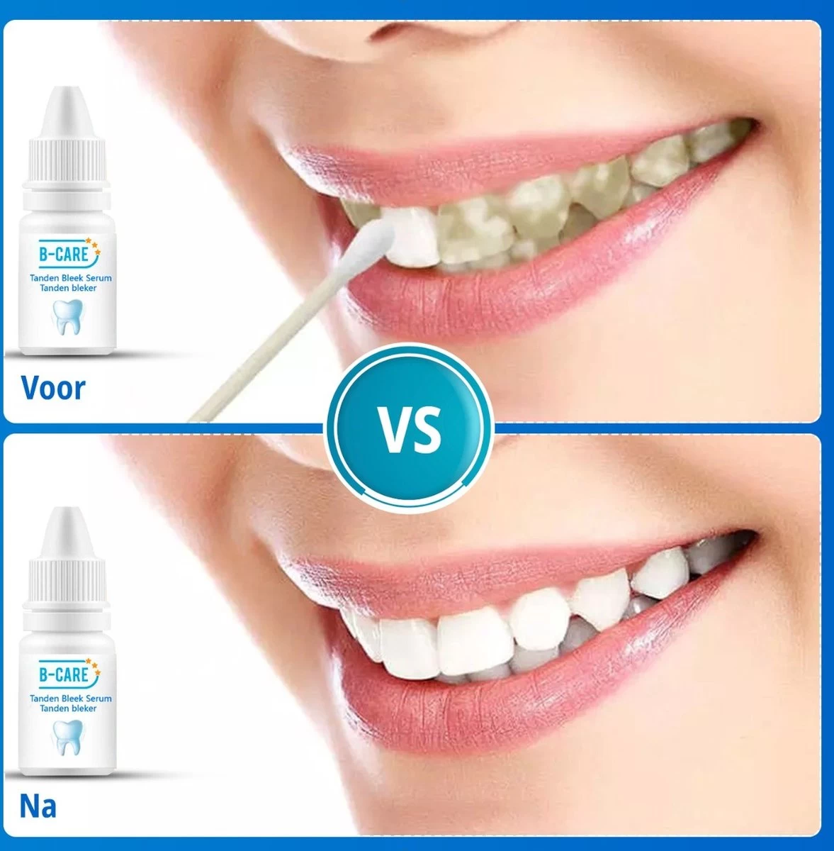 Het is nu mogelijk met de vernieuwende B-care Tanden Bleker. Met mondhygiëne serum verwijdert u tandplak, versterkt u het tandglazuur en maakt u vlekken schoon in een handomdraai. Eindelijk weg met de bruine vlekken op uw tanden door het roken en drinken van koffie, laat u stralende lach maar zien! Het product is meerdere keren per week te gebruiken, totdat het gewenste resultaat zichtbaar is.