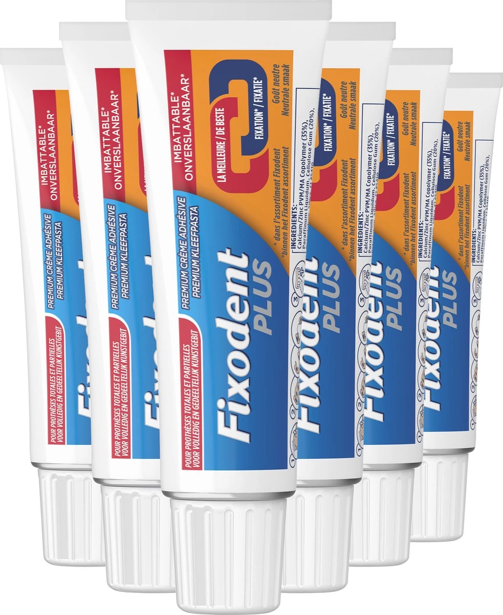 Geniet zelfs van hard voedsel met de kracht van Fixodent Plus De beste fixatie premium kleefpasta. De beste fixatie in het Fixodent-assortiment. Dankzij de ongeëvenaarde fixatie en geconcentreerde formule die gestaag kleefpasta vrijgeeft, zorgt Fixodent Plus ervoor dat u aan het einde van de dag nog steeds 88% van de eerste fixatie behoudt. Het biedt ook 10x sterkere fixatie t.o.v. geen kleefpasta, zodat uw kunstgebit op ieder moment en bij het eten van elke soort voedsel goed blijft zitten. Fixodent Plus is uitgerust met een standaard doseertuit voor gemakkelijk gebruik, is smaakvrij en heeft geen invloed op de smaak van voedingsmiddelen.