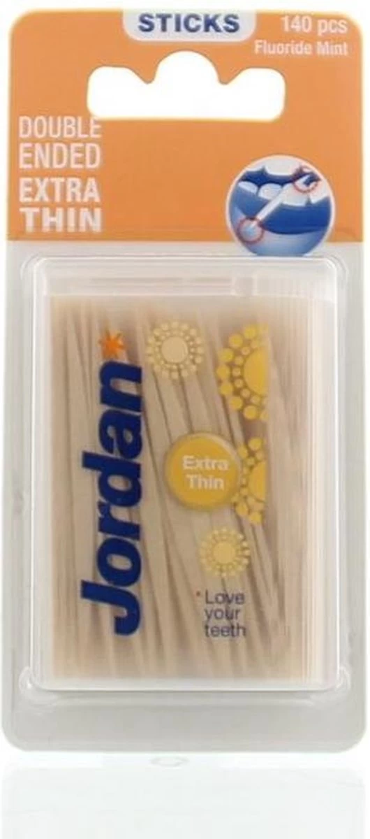 De Jordan Tandenstokers Extra Dun zijn speciaal ontworpen voor mensen met kleine tot zeer kleine ruimtes tussen de tanden en kiezen. De driehoekig gekante vorm zorgt voor extra goed bereik tussen de tanden. De tandenstokers zijn dubbel gekant, waardoor je beide uiteinden kunt gebruiken. De stokers bevatten mint en fluoride, voor optimale frisheid en reiniging. Ze zijn per 140 stuks verpakt in een wit transparante pocket pack.