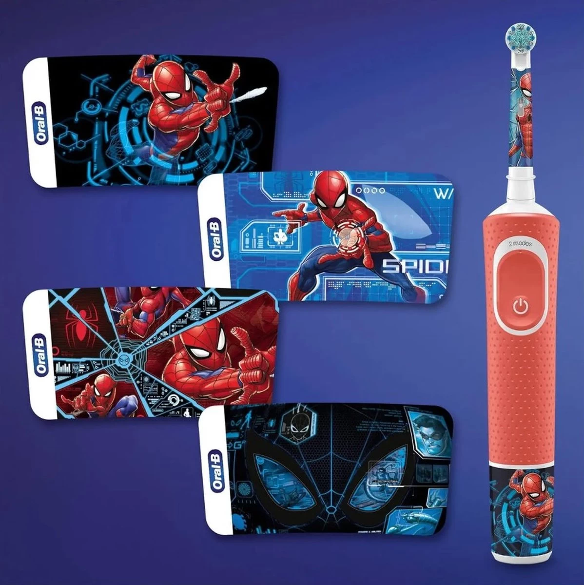 Laat je kind razendsnel tandenpoetsen met de nieuwe Oral-B Marvel Spider-man oplaadbare elektrische tandenborstel. De stoere kindertandenborstel met unieke stickers is speciaal ontwikkeld voor kinderen. De rode tandenborstel beschikt over 2 poetsmodus zodat je het jonge gebit zacht maar toch grondig kunt poetsen. Vanaf 3 jaar is het al mogelijk om te poetsen met Marvel Spider-man elektrische tandenborstel. Ook tandartsen adviseren om kinderen al vanaf jonge leeftijd te laten wennen aan een elektrische tandenborstel. Het is daarom slim om kinderen spelenderwijs te leren poetsen met een elektrische tandenborstel. Op deze manier kunnen kinderen de rest van hun leven hun gebit goed onderhouden.