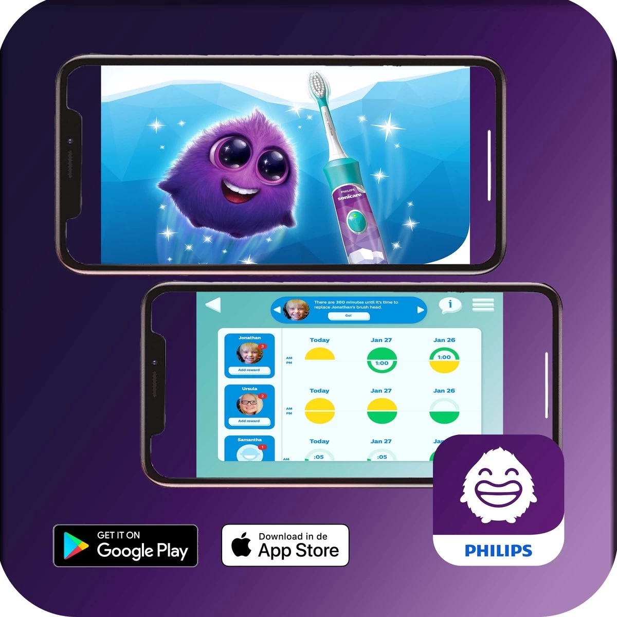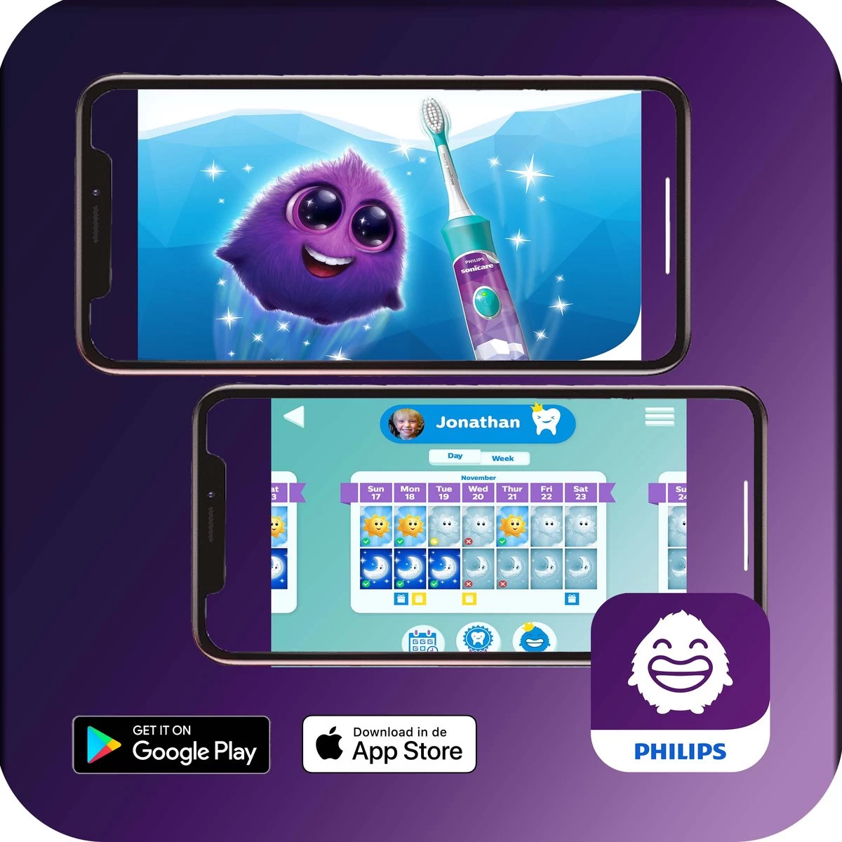 Met de Philips Sonicare For Kids-tandenborstel en app kunnen kinderen leren hoe ze goed zelfstandig kunnen poetsen. De app synchroniseert met de sonische tandenborstel van jouw kind via Bluetooth, laat de juiste poetstechieken zien en volgt de prestaties. Kinderen kunnen zien hoe goed ze poetsen en fantastische beloningen verdienen. Educatief en effectief; 98% van de ondervraagde ouders geeft aan dat het gemakkelijker is om de kinderen langer en beter te laten poetsen. Het is een leuke manier om kinderen goede mondverzorgingsgewoonten te laten ontwikkelen waar ze hun leven lang van profiteren.