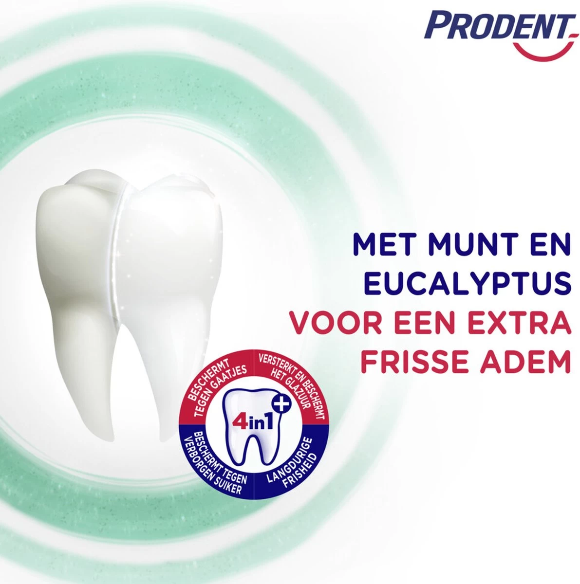 Prodent Menthol Power tandpasta met munt en eucalyptus voor een extra frisse adem.