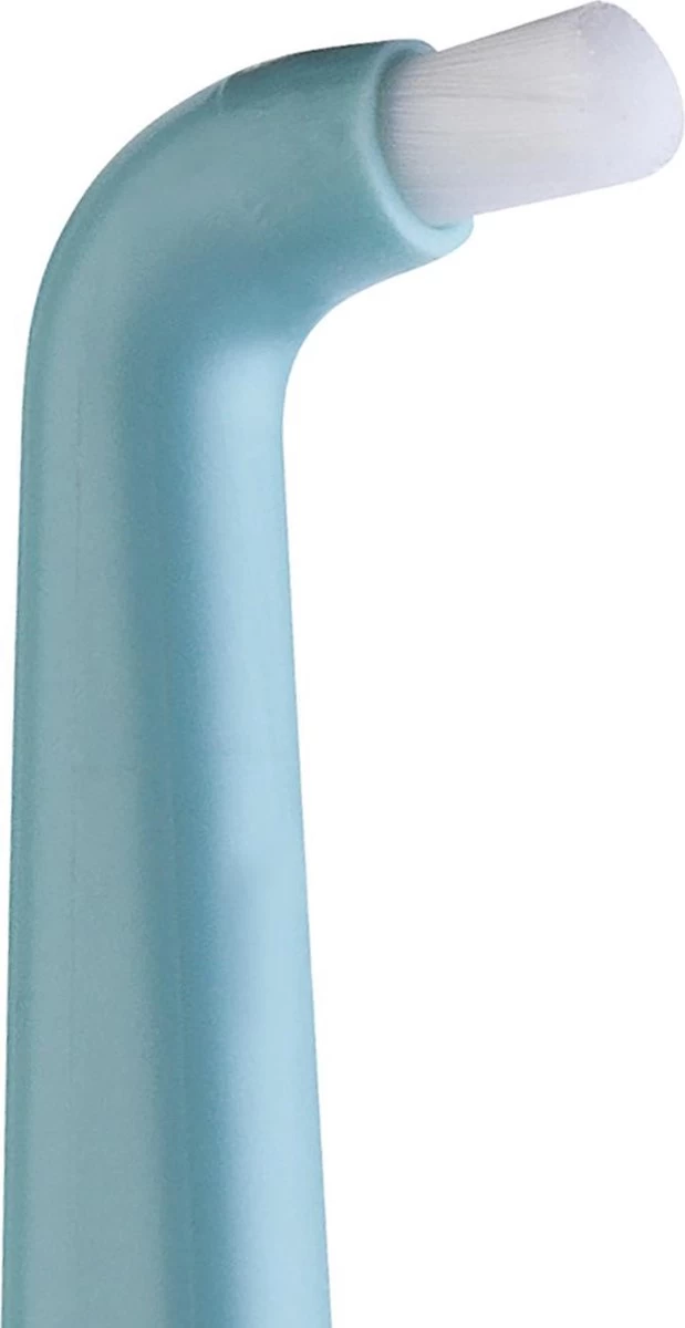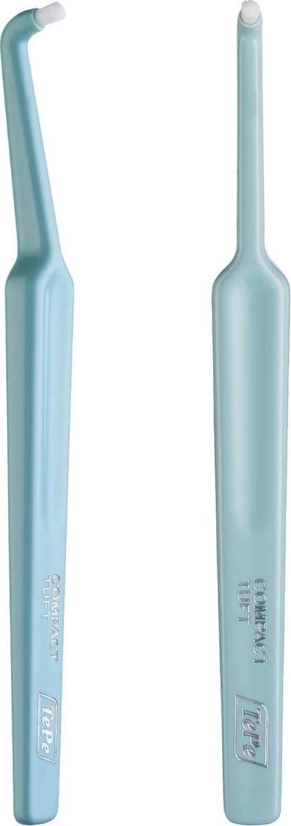 De Compact Tuft is een stompe, compacte borstel met een gehoekte nek. De borstelharen zijn extra zacht en kort. De smalle, soepele borstelkop bereikt ook moeilijk bereikbare vlakken.