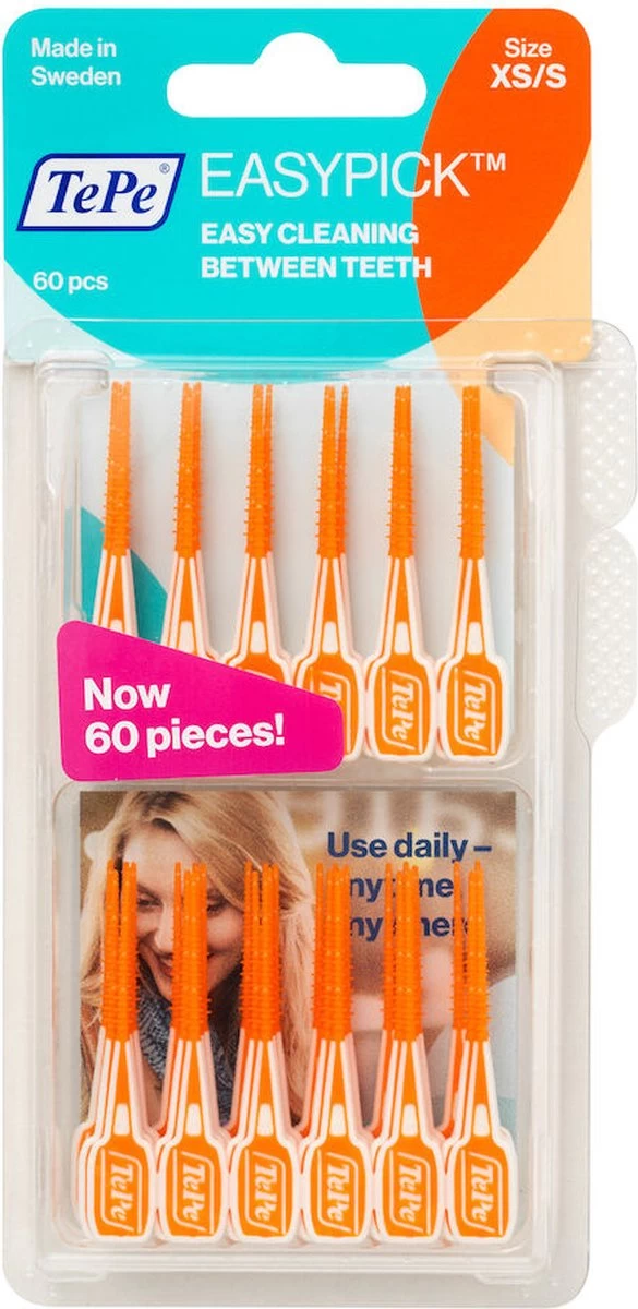TePe EasyPick is een zachte siliconen tandenstoker waarmee je eenvoudig en efficiënt tussen de tanden kan reinigen. De EasyPick helpt tandplak en voedselresten tussen de tanden en kiezen te verwijderen en zorgt tegelijkertijd voor een massage van het tandvlees, waardoor het tandvlees gezond en stevig blijft. Ook tijdens het dragen van beugels, implantaten of kronen. De unieke combinatie van materialen maakt het flexibel, duurzaam en comfortabel in gebruik.